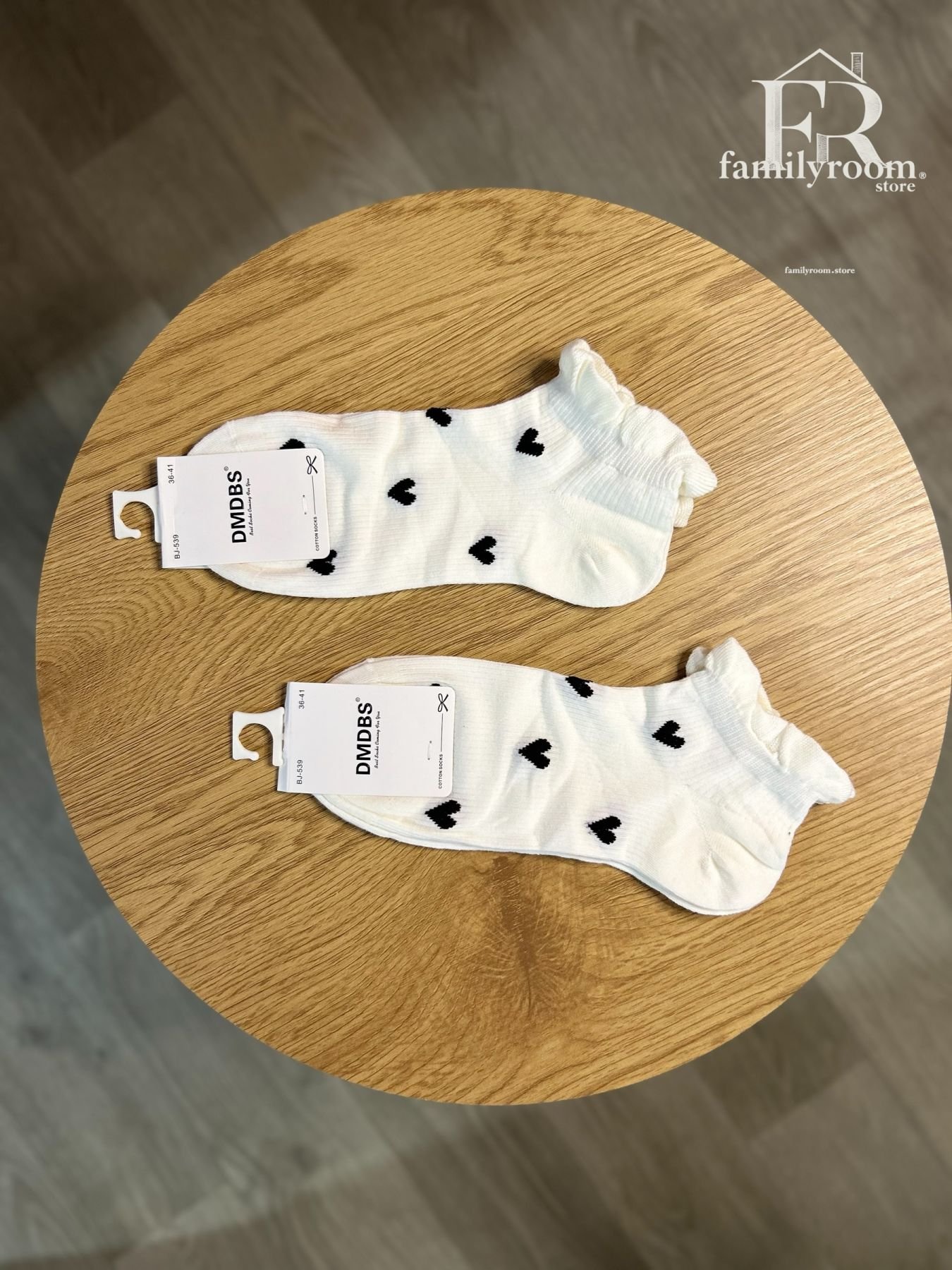 - Шкарпетки білі з чорними сердечками та ніжними рюшиками