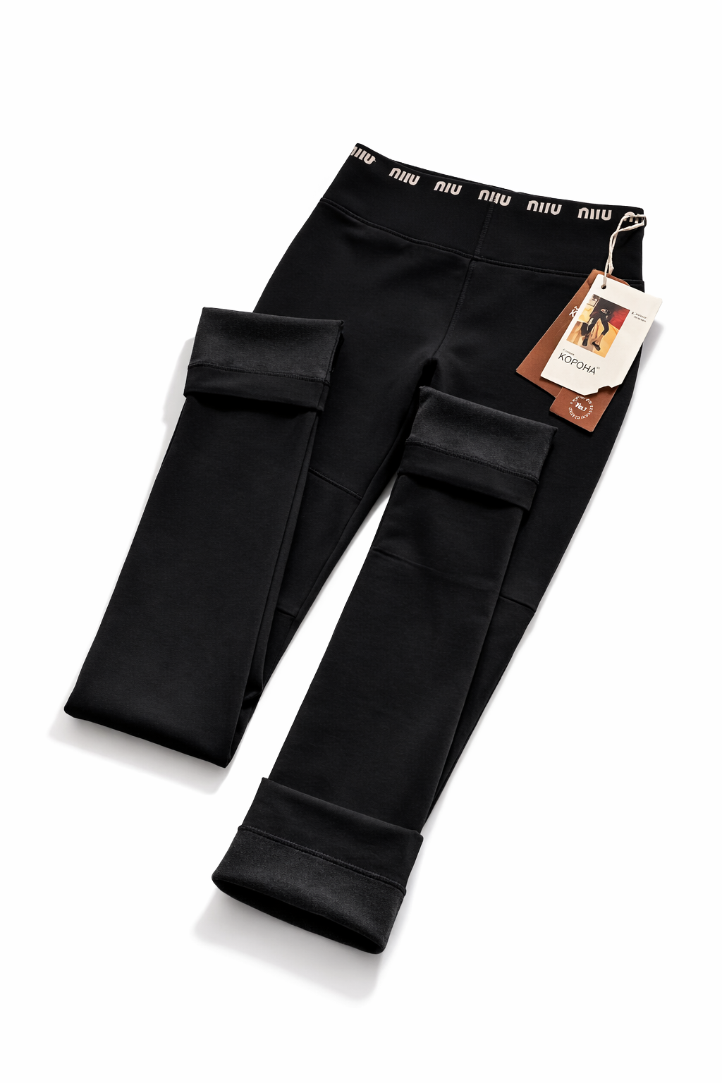 Лосини "Корона" І Еластичний бавовняний трикотаж з плюшевим начісом, напис на резинці І Розмір універсальний: на обхват стегон 86–105см - (чорні)