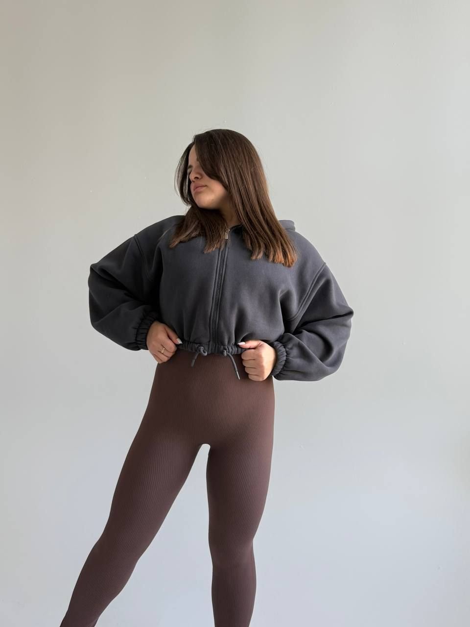 Лосини зі штрипкою через п’яту виглядають дуже стильно і додають образу “зібраності” — їх реально носять і під базу, і під більш модні аутфіти.