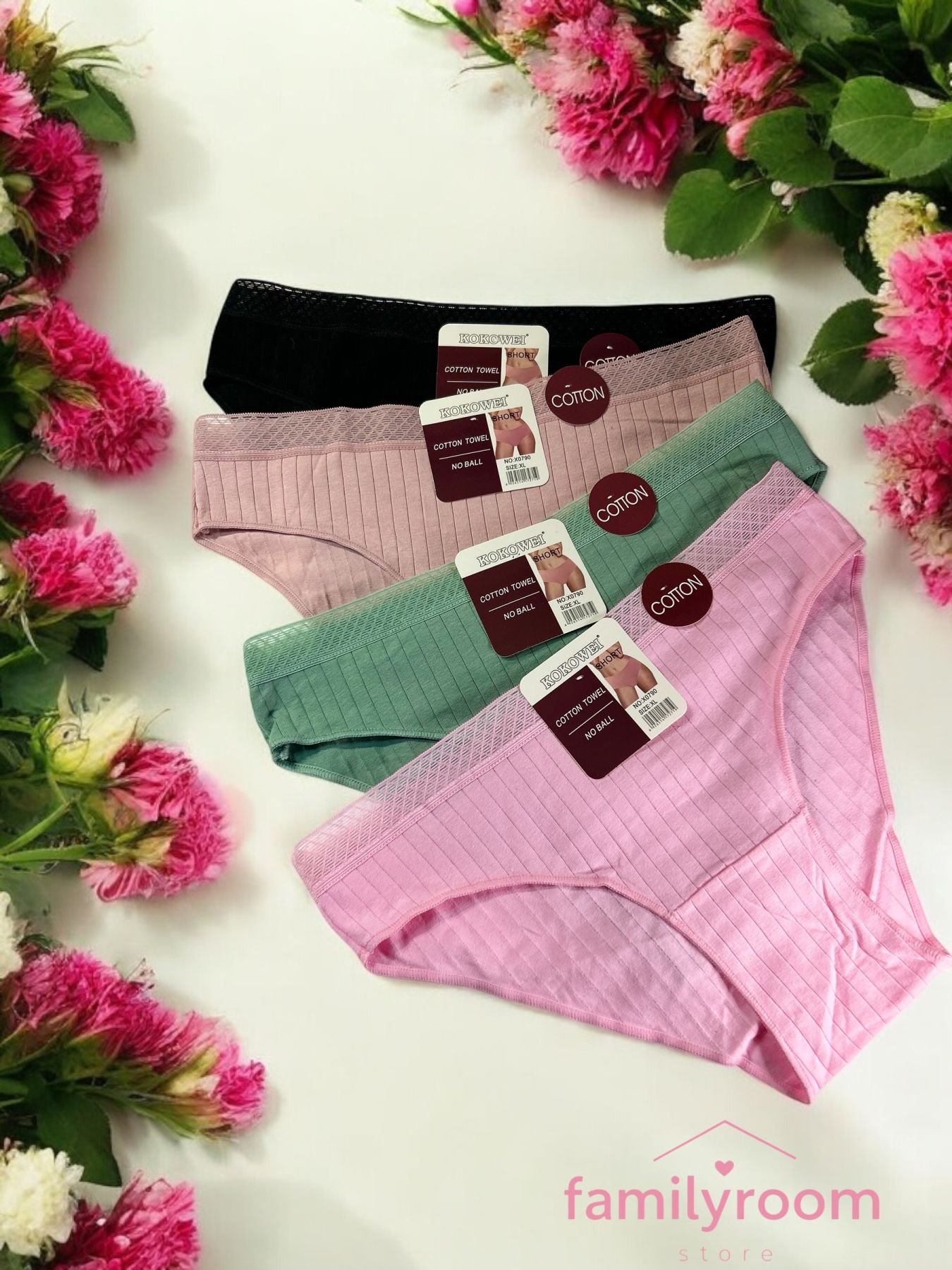 У комплект входять три однотонні трусики в рубчик, а четвертий ви отримуєте у подарунок 🎁.
