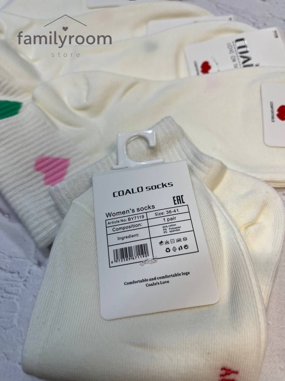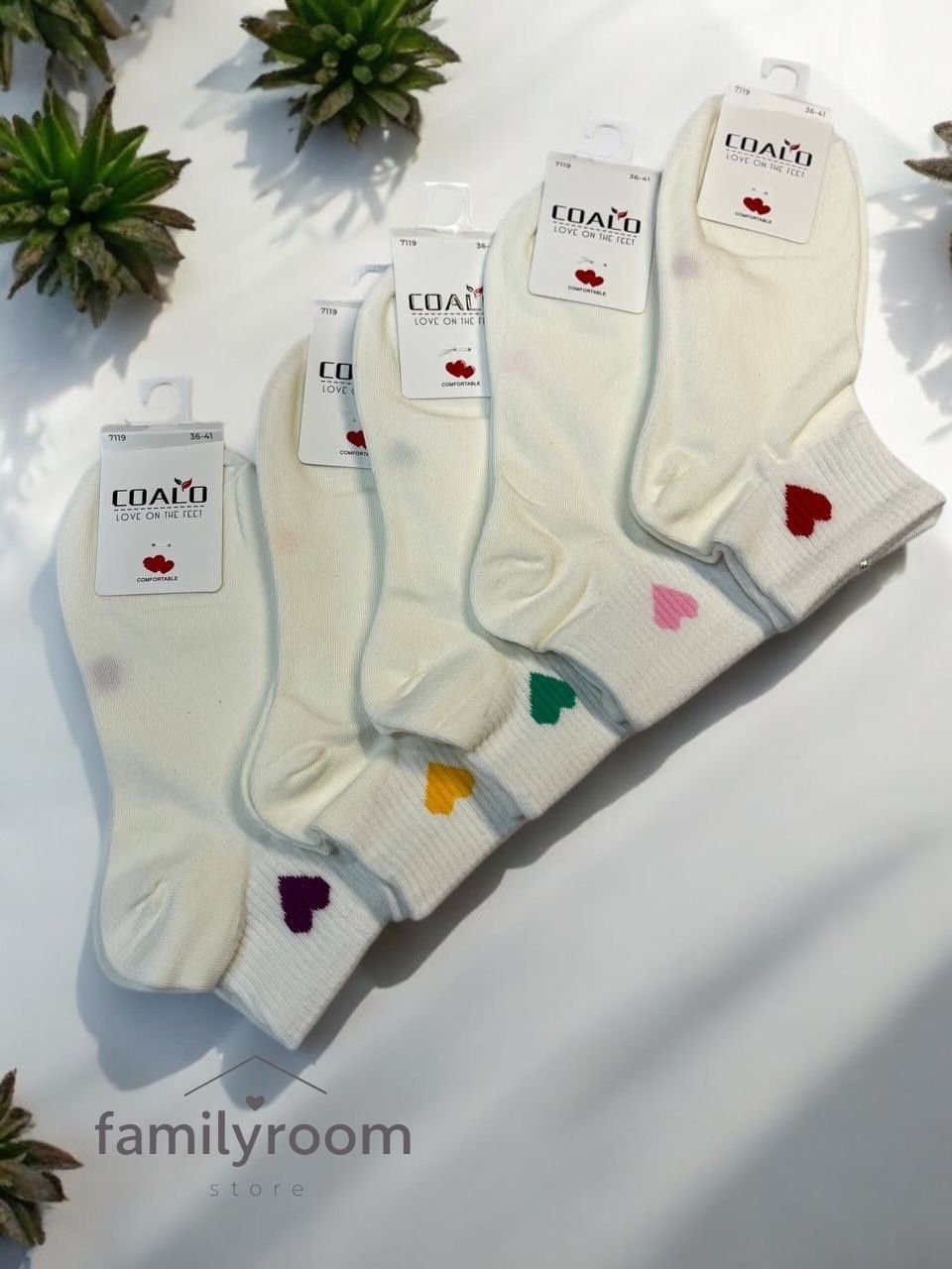 Шкарпетки демісезонні «COALO» |•Кольорові сердечка• Короткі •| Розмір: 36-41