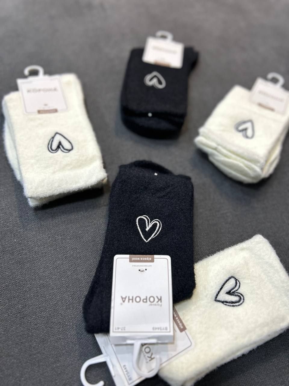 Зимові шкарпетки альпака "Корона" |• Вишите серце• Розмір: 37-41