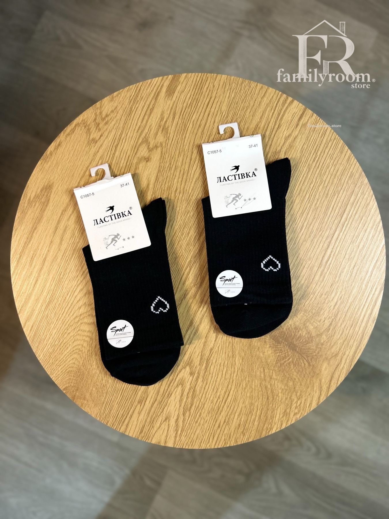 - Шкарпетки білі з чорними сердечками та ніжними рюшиками