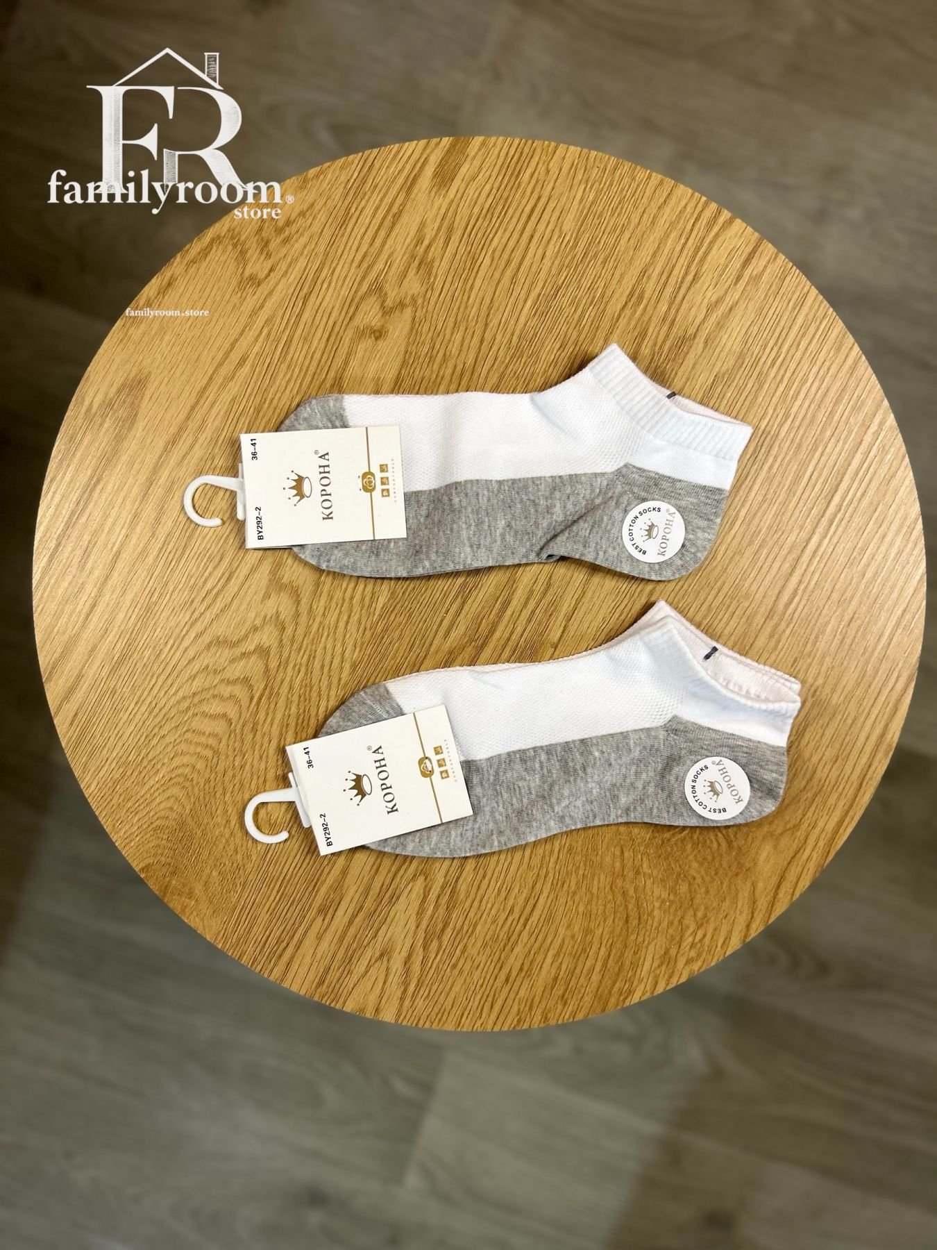 - Шкарпетки сітка, короткі — білий верх + сірий низ