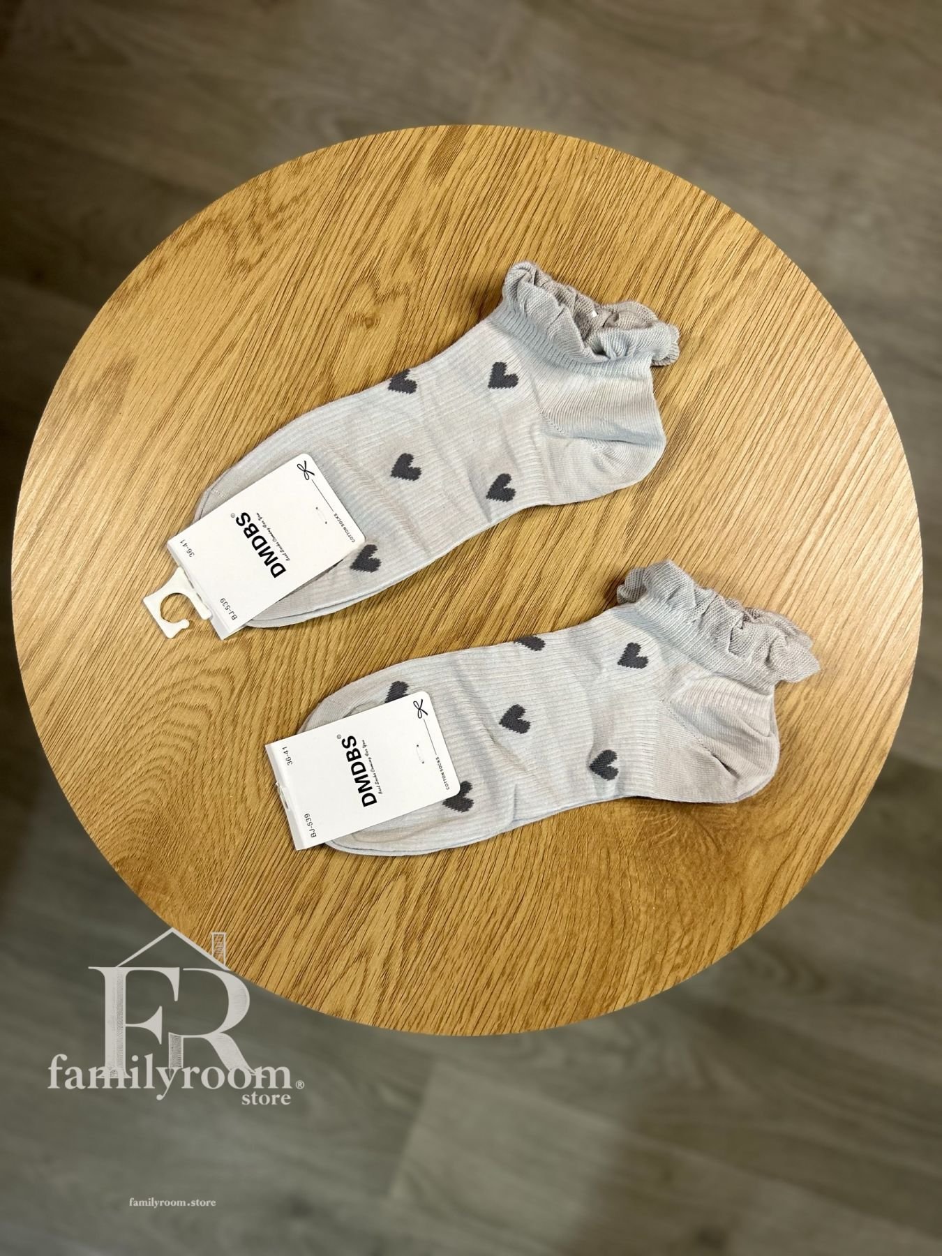 - Шкарпетки світло-сірі з графітовими сердечками та ніжними рюшиками