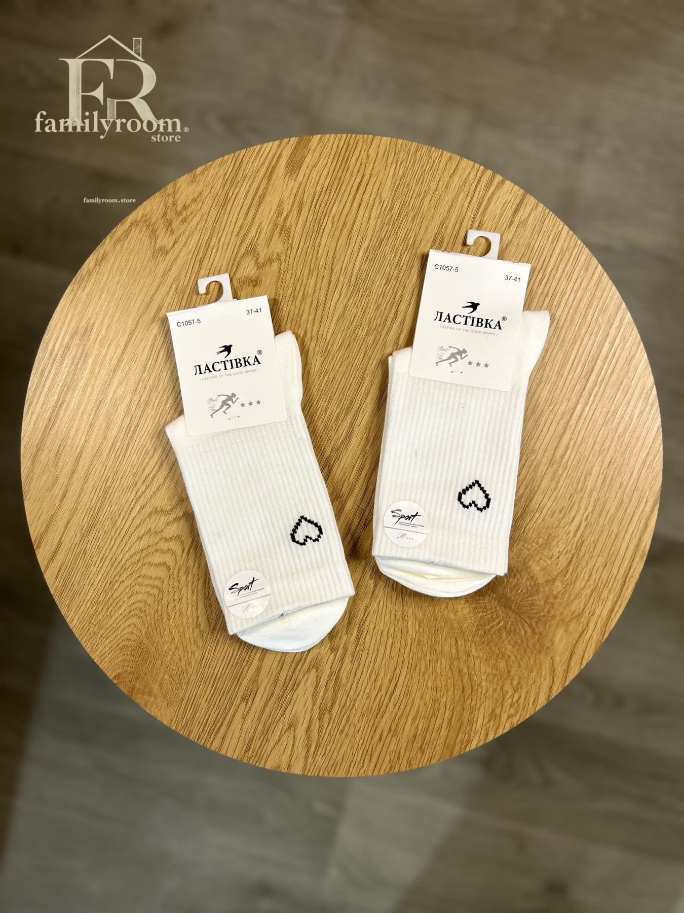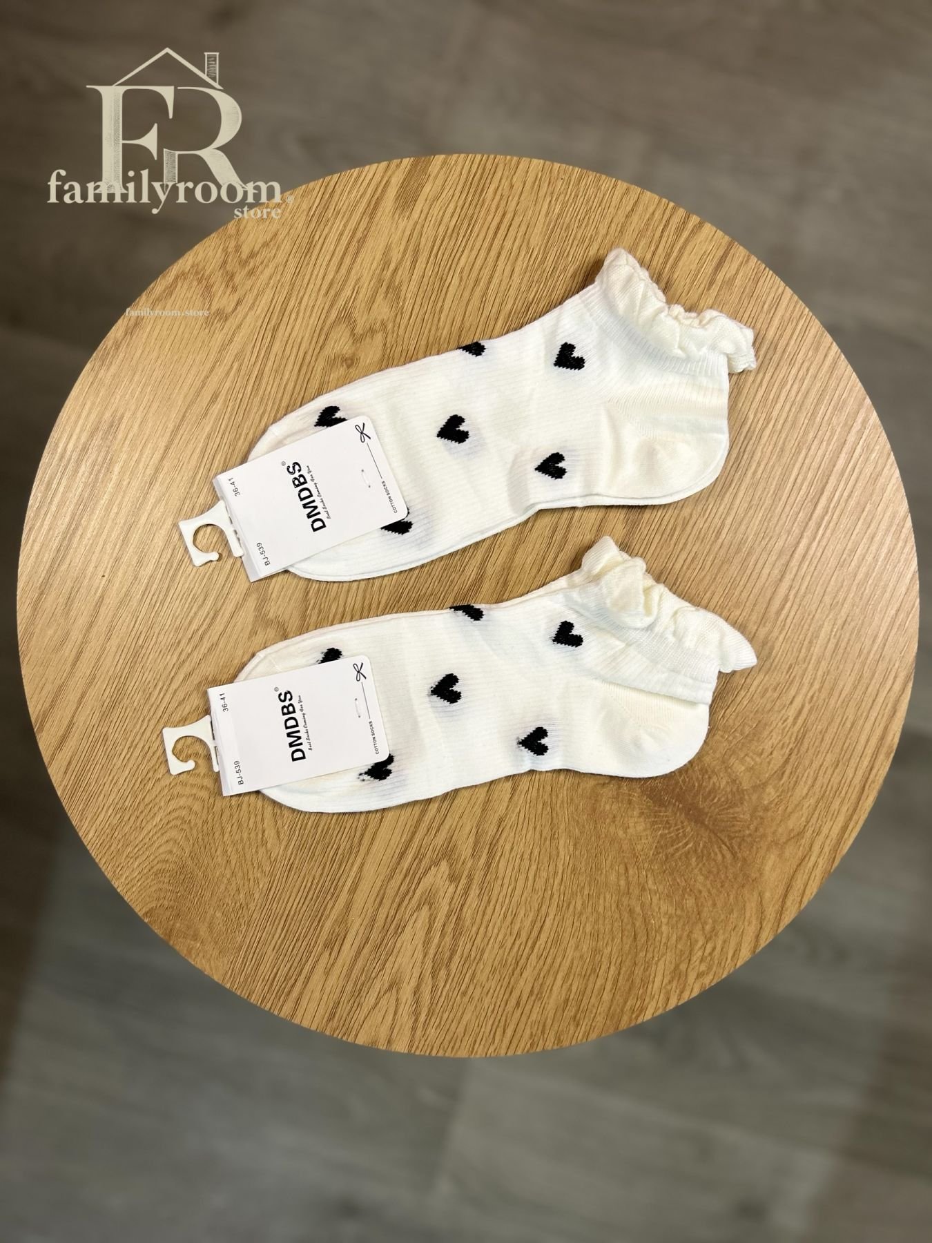 - Шкарпетки білі з чорними сердечками та ніжними рюшиками