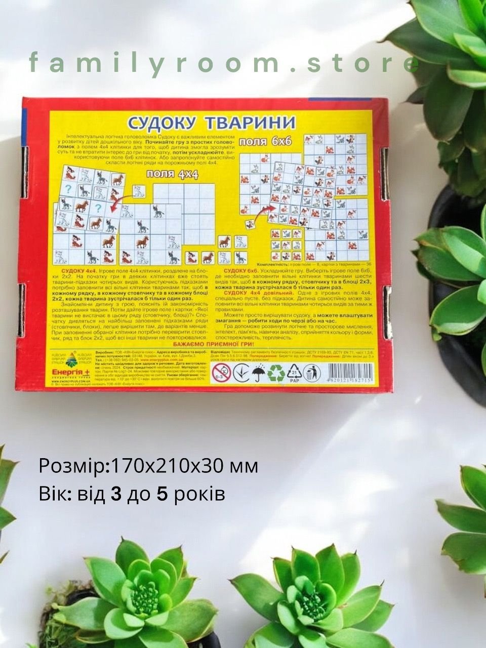 Судоку Логіка малюкам Тварини - інтелектуальна логічна головоломка є важливим елементом розвитку малюків дошкільного віку. Гра допоможе розвинути просторове та логічне мислення, інтелект, пам'ять, навички аналізу, дрібну моторику рук, сприйняття кольору та форми, спостережливість, терплячість. У комплекті є судоку 4х4 та 6х6, а також поле для творчості.