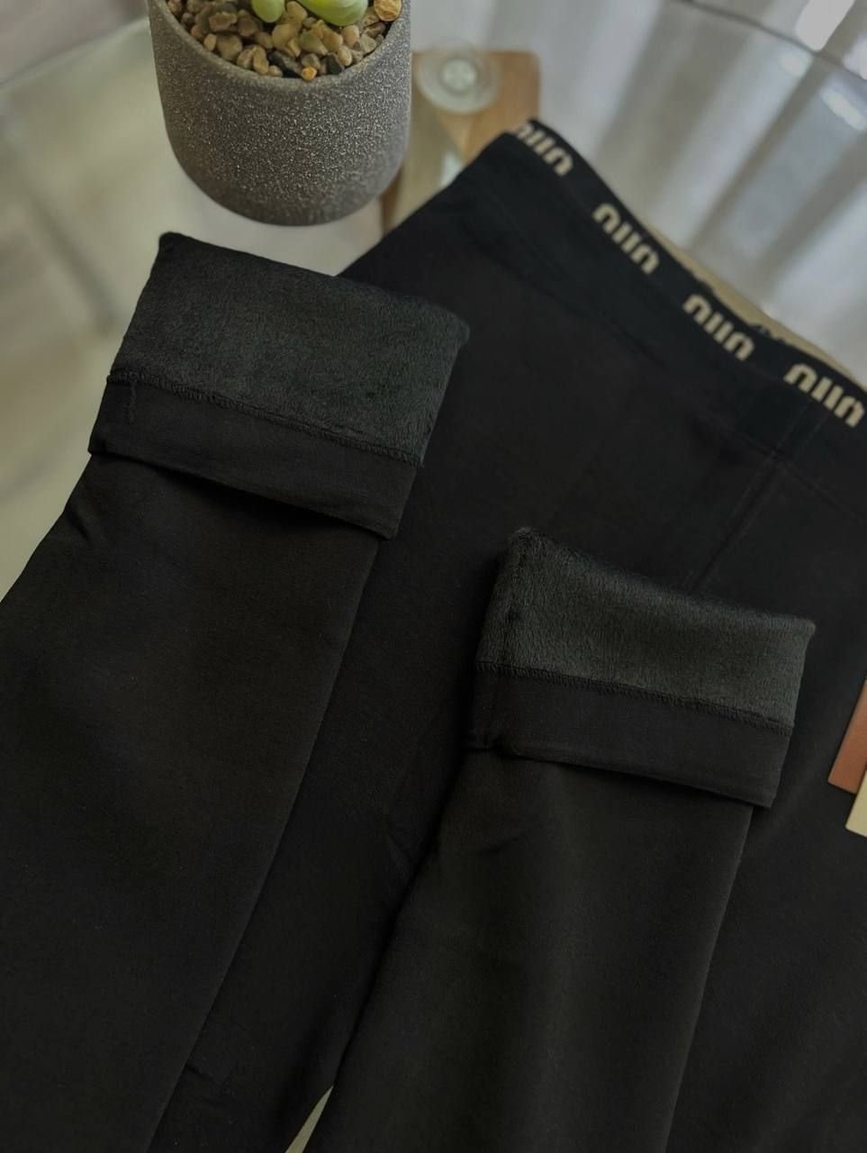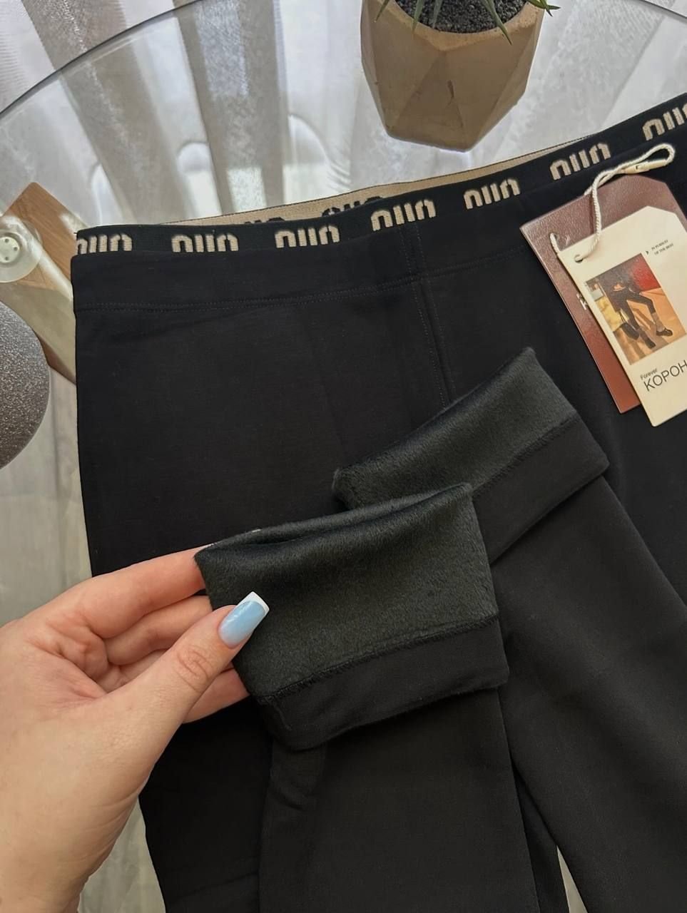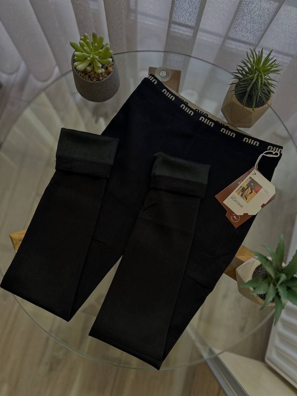 Лосини "Корона" І Еластичний бавовняний трикотаж з плюшевим начісом, напис на резинці І Розмір універсальний: на обхват стегон 86–105см - (чорні)