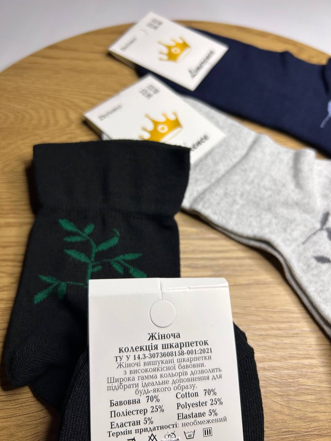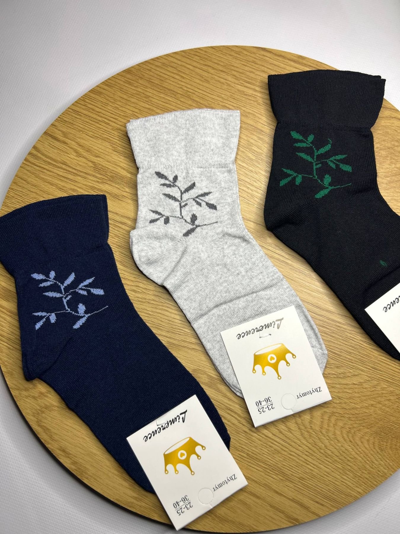Медичні демісезонні шкарпетки "Limerence" | • Жіночі з малюнком гілки• "Без резинки" | Розмір: 36-40 Набір: 12 пар