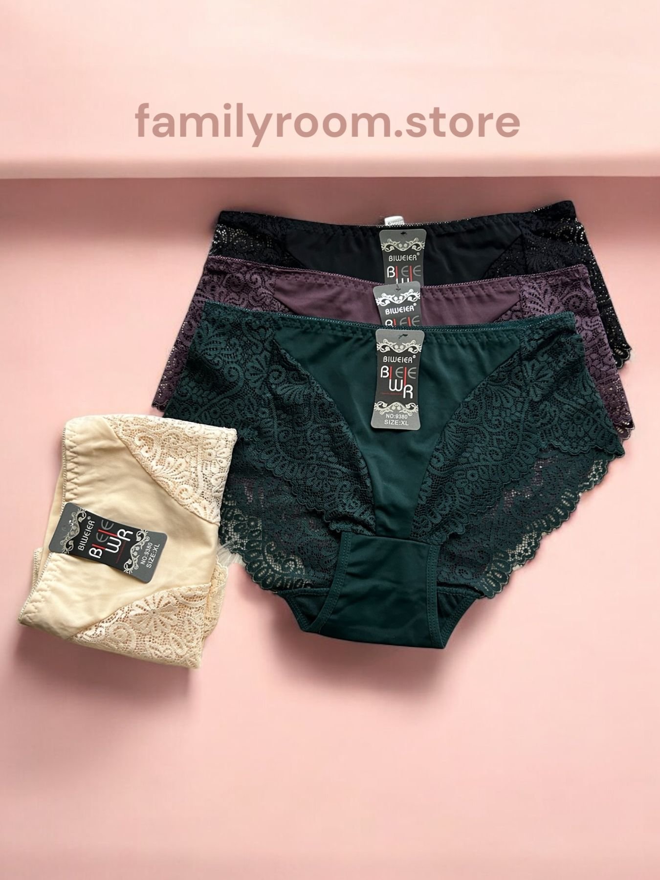 Набір трусиків «Biweier» з Мереживом | 3шт. + 1 в подарунок | ОС ( від 106 до 118 см)