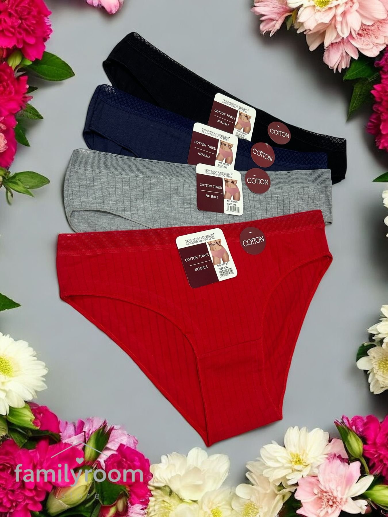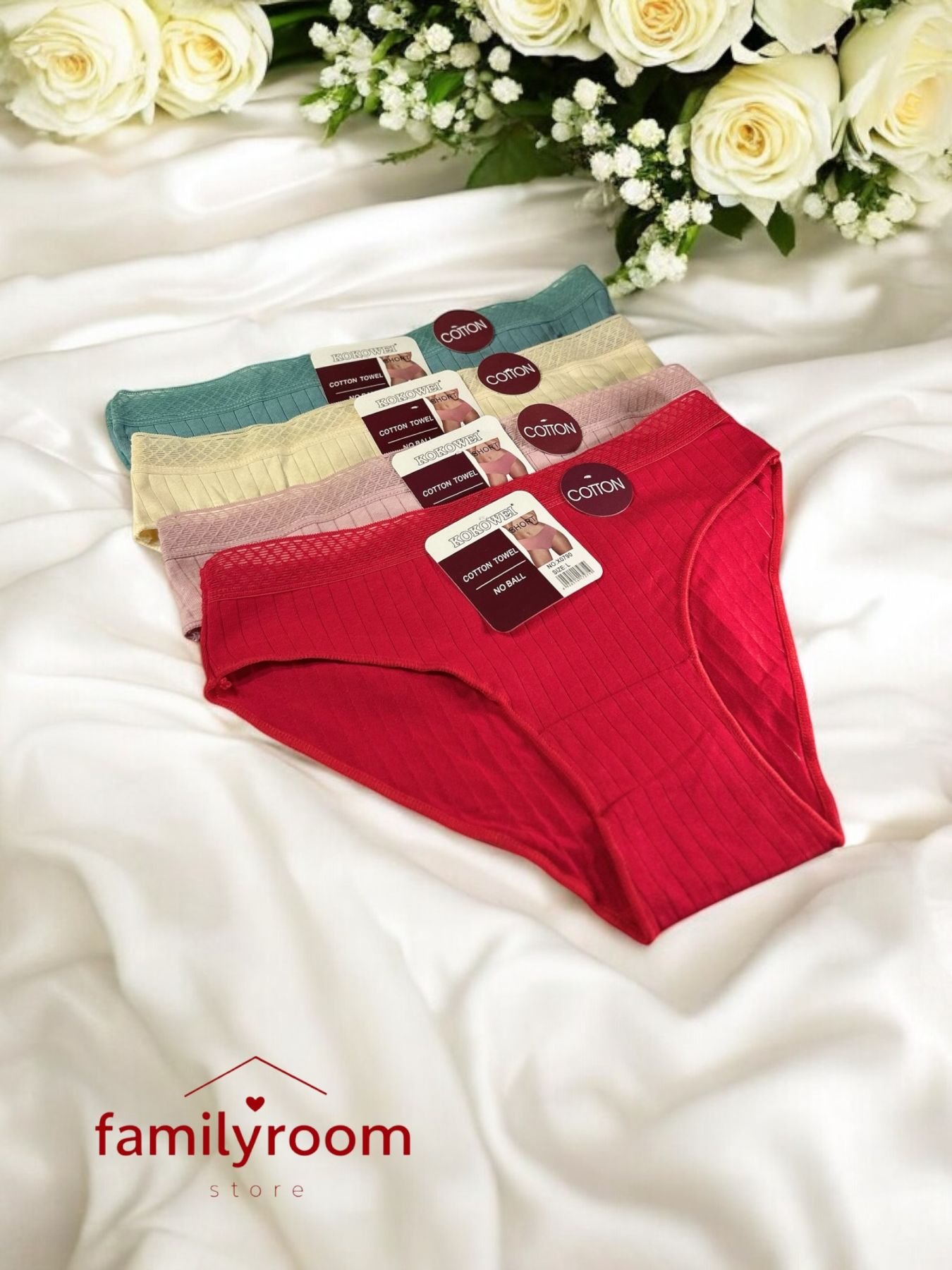 У комплект входять три однотонні трусики в рубчик, а четвертий ви отримуєте у подарунок 🎁.