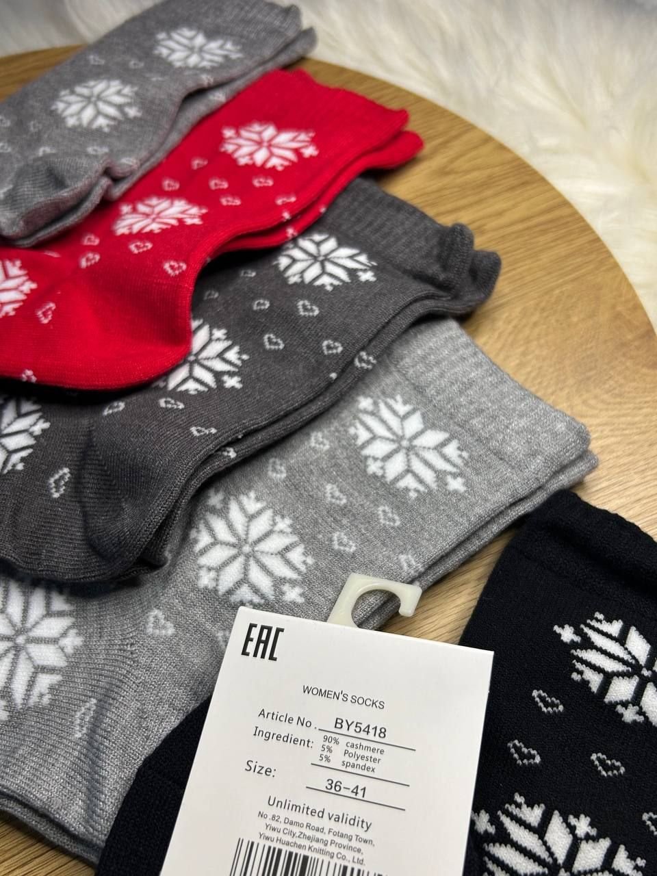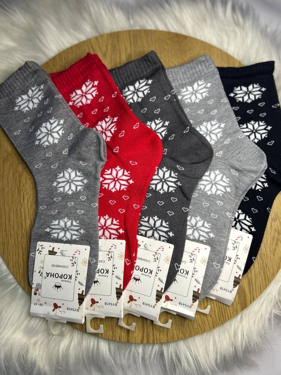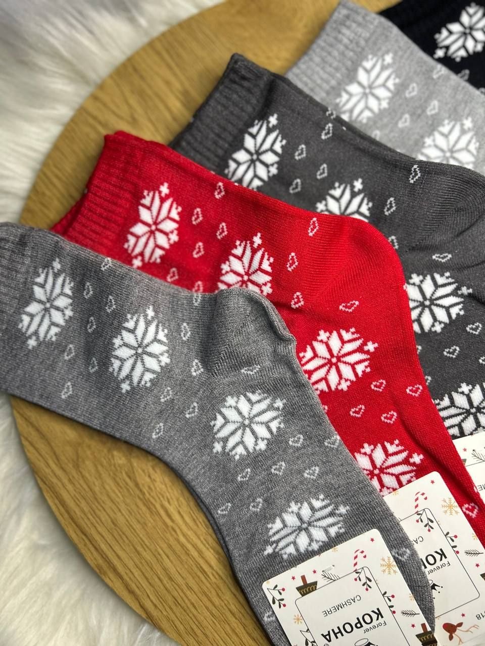 Новорічні термо/кашемірові шкарпетки "Корона" | Жіночі • Сніжинки| Розмір: 36-41