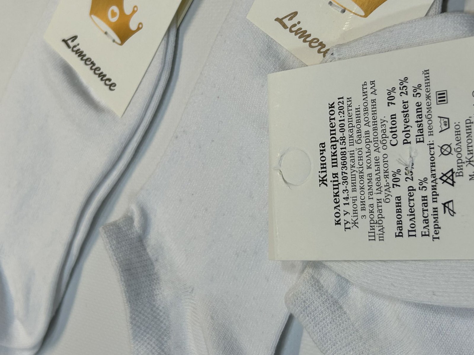 Шкарпетки демісезонні «Limerence», набір 12 пар|Білі базові• Короткі • Розмір: 36–40 Набір: 12 пар