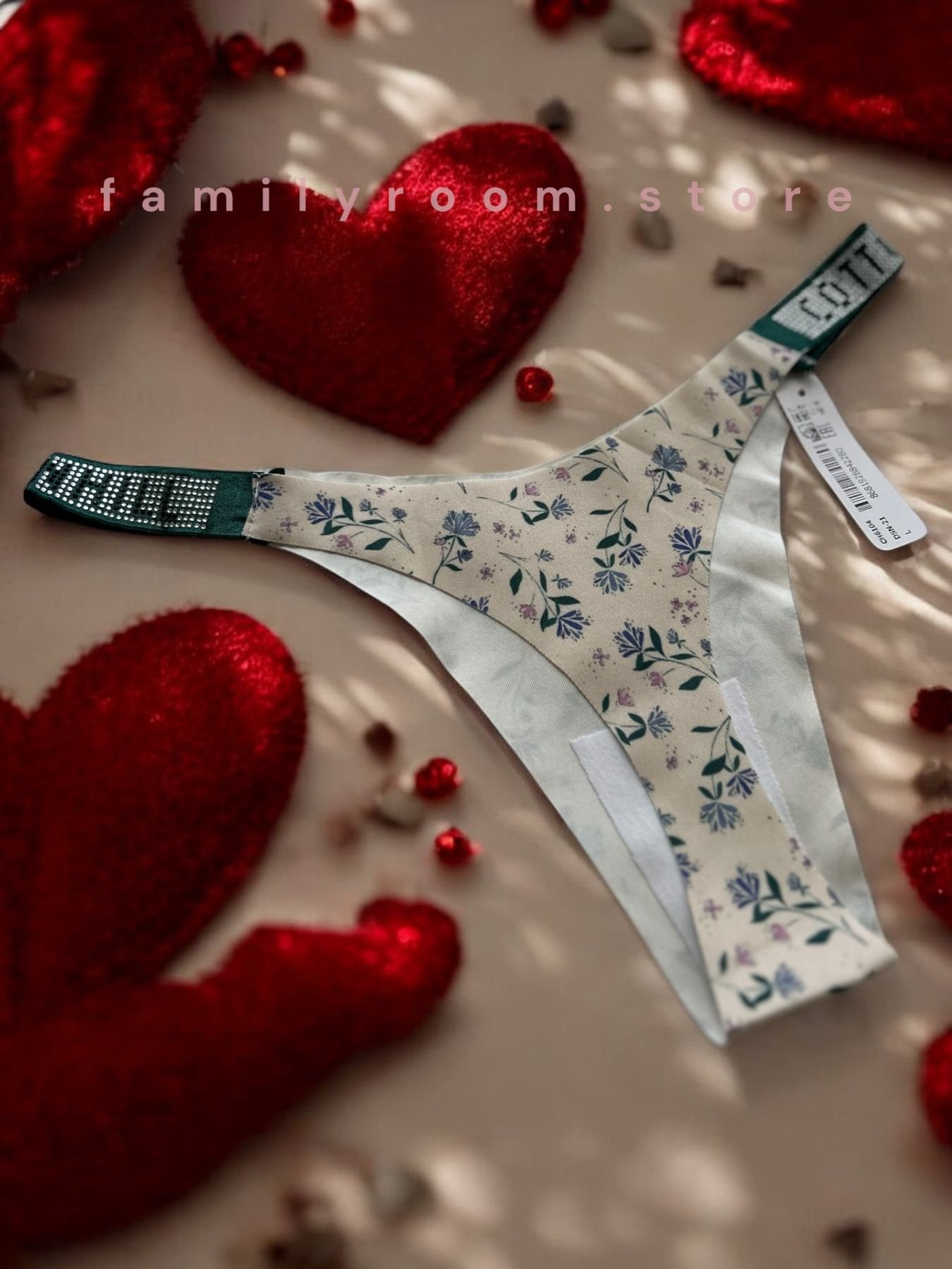 Яскравий декор зі стразів, розташований на бокових бретелях, додає трусикам елегантного блиску та витонченості, що привертає увагу та підкреслює вашу індивідуальність.