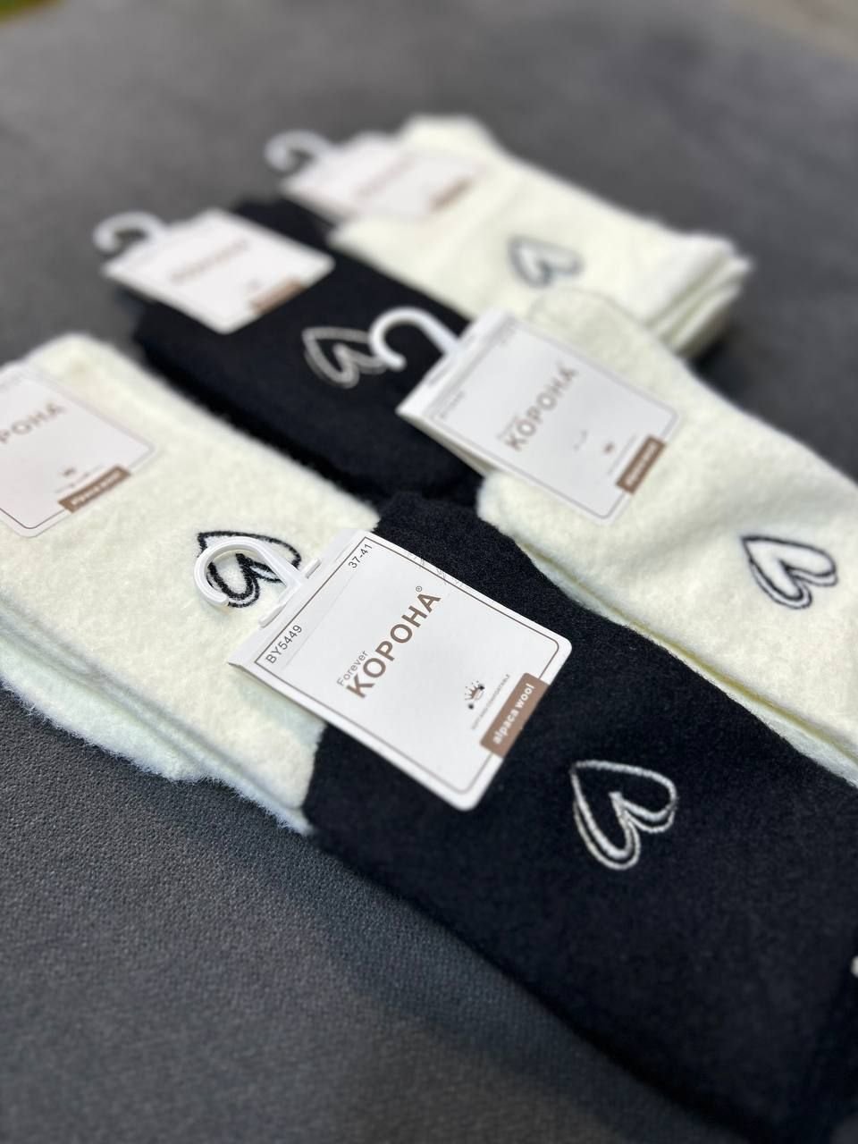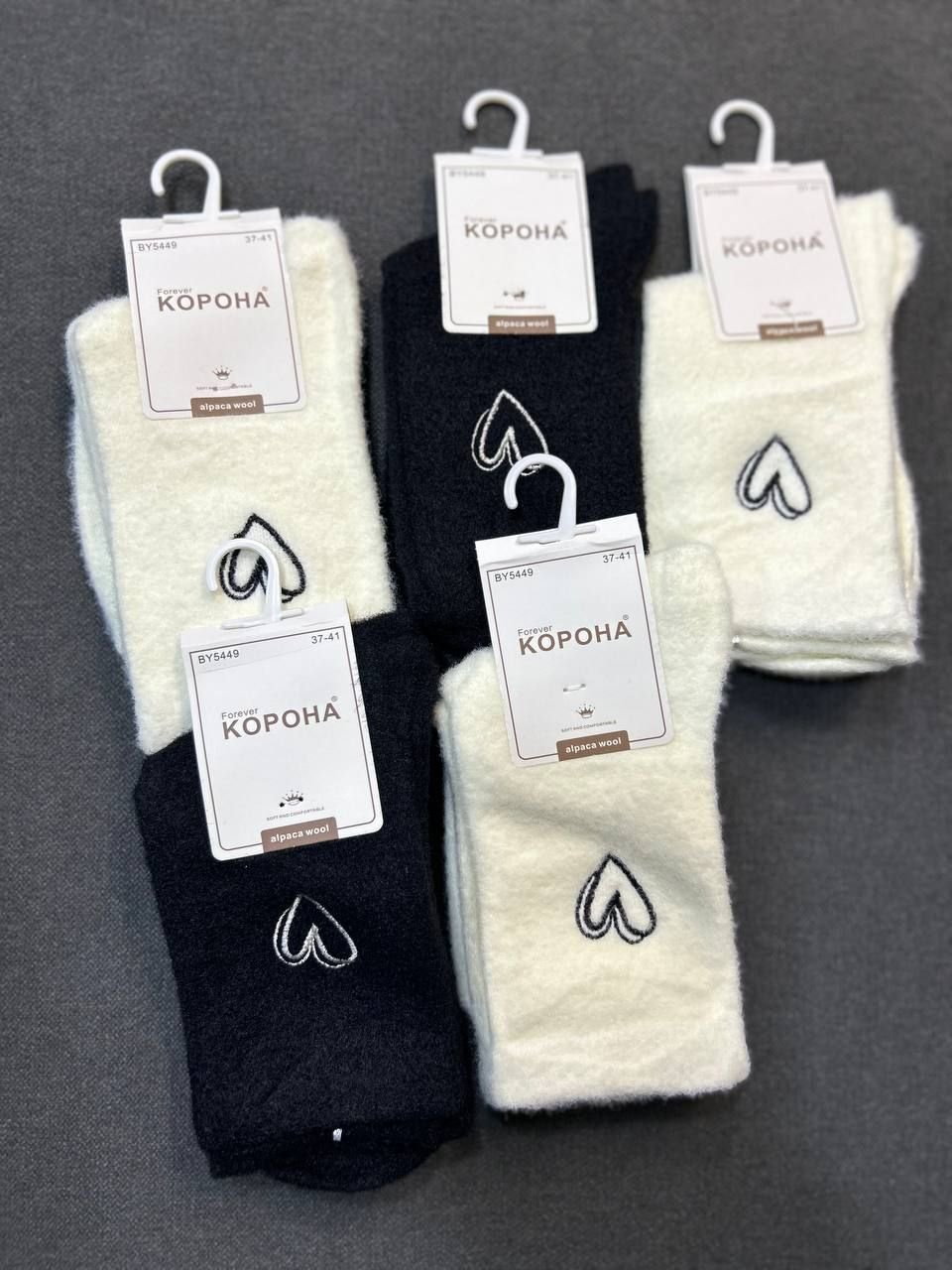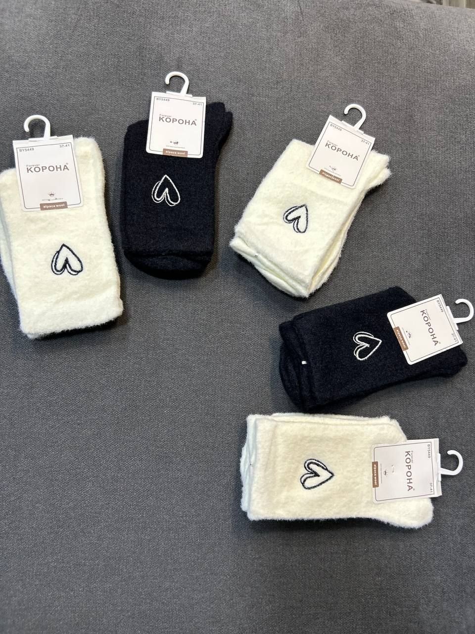 Зимові шкарпетки альпака "Корона" |• Вишите серце• Розмір: 37-41 Набір: 5 пар